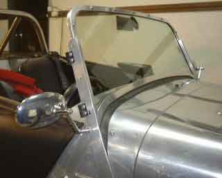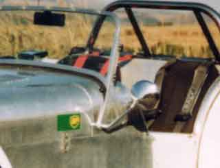 セヴンには通常バイク用のミラーがついてきます。取り付け位置はノーマルスクリーンの取り付け穴と共用なので、やや低く後方視界は十分とはいえません。