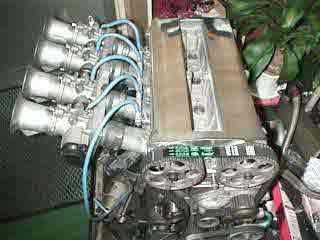 ホイルは F3用のセンターロック。たこ足は 50パイでワンオフ。マフラーはチタンで後ろ出し。