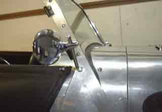 セヴンには通常バイク用のミラーがついてきます。取り付け位置はノーマルスクリーンの取り付け穴と共用なので、やや低く後方視界は十分とはいえません。